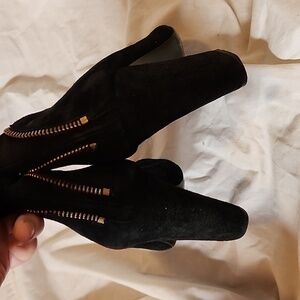 These are the most adorable boots. Zippers do not actually zip all thecway..pretty much as shown
