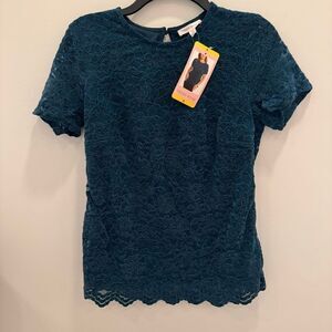 Teddy Rose Women's Lacy Keyhole Top BLUE