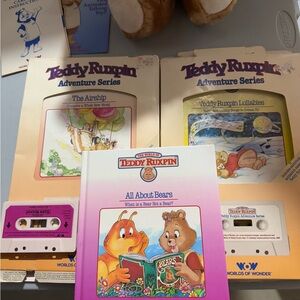 Vintage Teddy Ruxpin with 3 books and cassettes . 2 of the books have the original box. Also included is manual.