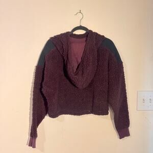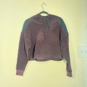 Teddy Sherpa Hoodie - Brown Cropped Pullover Shoulders Size M