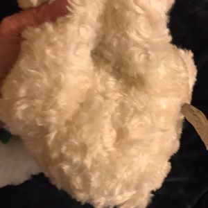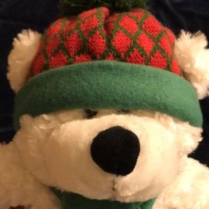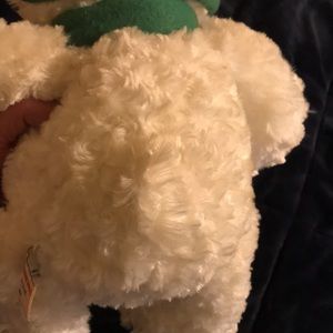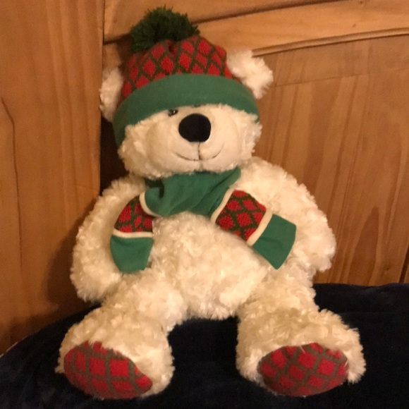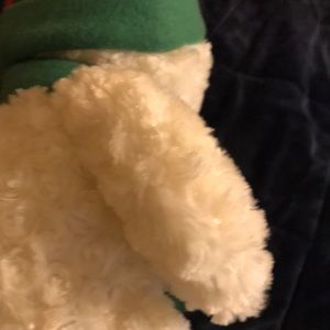 Very soft teddy bear, well kept. It is a Saint Jude bear from 2013, I took the tag off because it had my name on it. It’s white, red, green. Made by Hugfun international