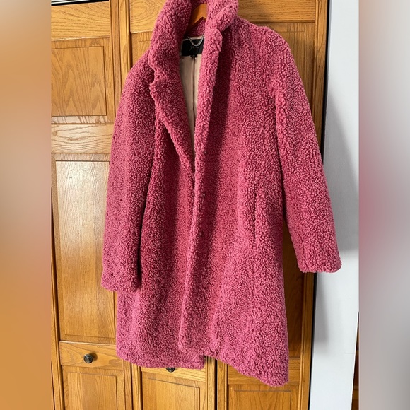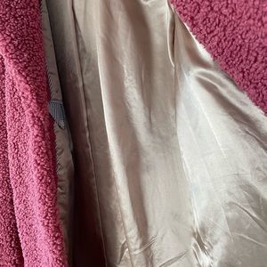 In perfect condition in dark pink teddy coat in size M fully lined