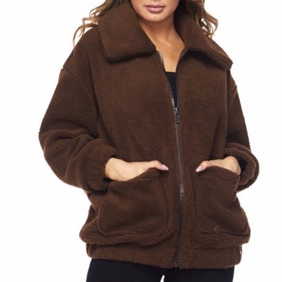 Teddy Sherpa faux fur jacket featuring a collar, front pockets, zipper, cozy thick coat jacket with inside lining