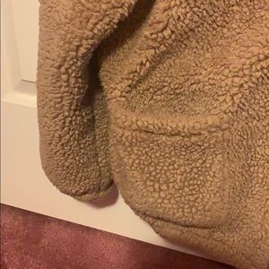 Tan zip up teddy bear jacket with pockets. Inside has a silky lining