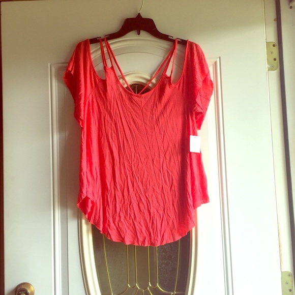 Off the shoulder sleeved t-shirt! Never worn! With tags! Will iron!