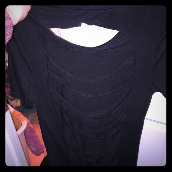 Short sleeve, black tee with ripped back