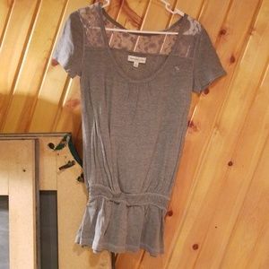 Abercrombie and Fitch tee size small but fits medium. Barely used! Lace off shoulders and top of back