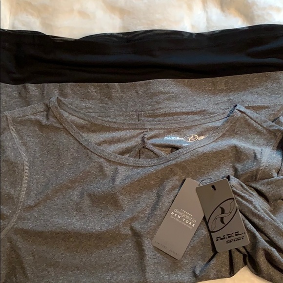 Layered look sports tee. The black is mesh and there’s a keyhole detail on the back.