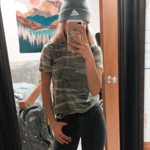 Camo Tee, size medium but fits a small or xs, i always like to tie it