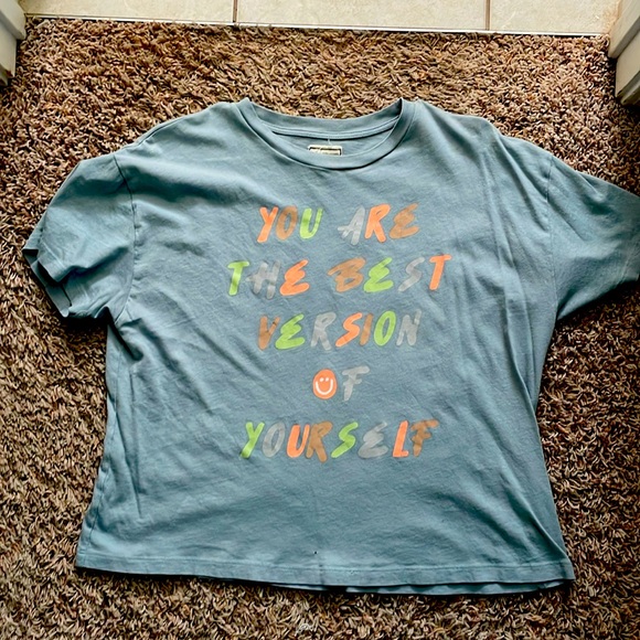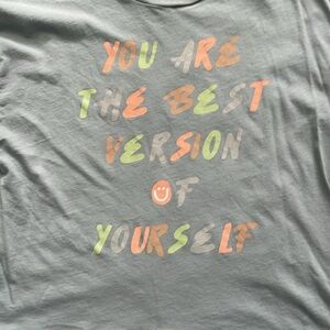 Teal graphic with inspiration quote lil hole at bottom from belt loop