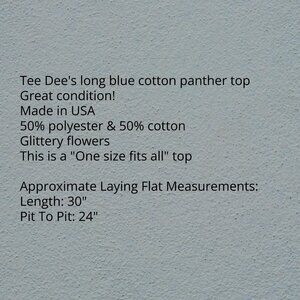 Tee Dee's One Size Fits All Blue Cotton Polyester Panther Top