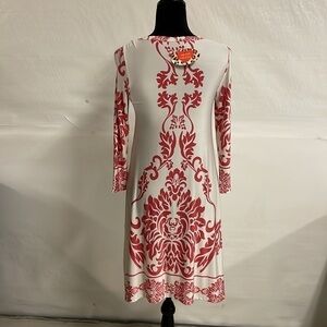 3/4 length sleeve white with pink print dress. Side pockets. From TEE FOR THE SOUL. New with tags.