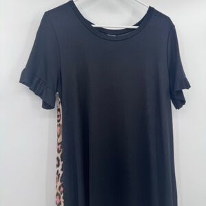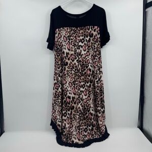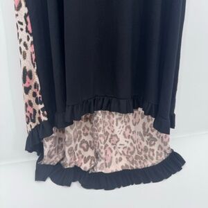 Tee For The Soul Dress Women Large NEW Black Sleep Pajamas Ruffle Animal Print