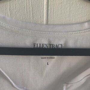 Tee Shirt by Ellen Tracy, White 92% Cotton Knit, Cuffed Short Sleeve. Size L
