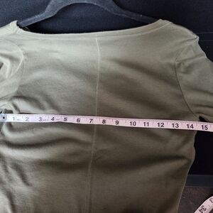 Olive green women's long sleeve tee. Soft and comfortable. 60% cotton 40% polyester size large