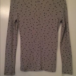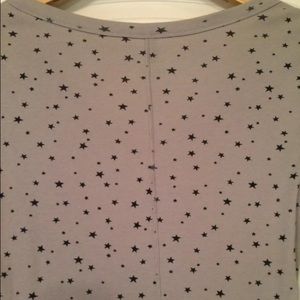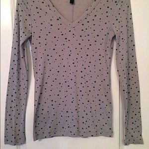 Cute and comfy Victoria's Secret Tee Shop brand long sleeve v-neck top. It's gray with black stars. It's in excellent condition. It's made of a Cotton/Polyester blend. The length is 26". Chest is 16". The sleeves measure 26" from top sleeve hem to bottom of the sleeve. All my clothes are smoke and pet free.
