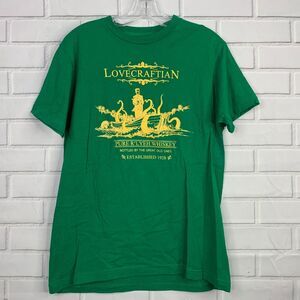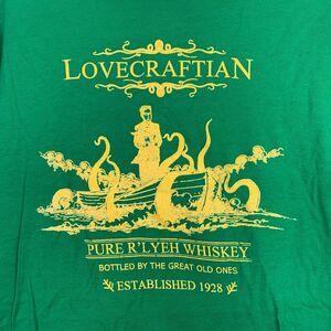 Tee Villain tshirt HP Lovecraft Rlyeh Whiskey green ringspun cotton size medium