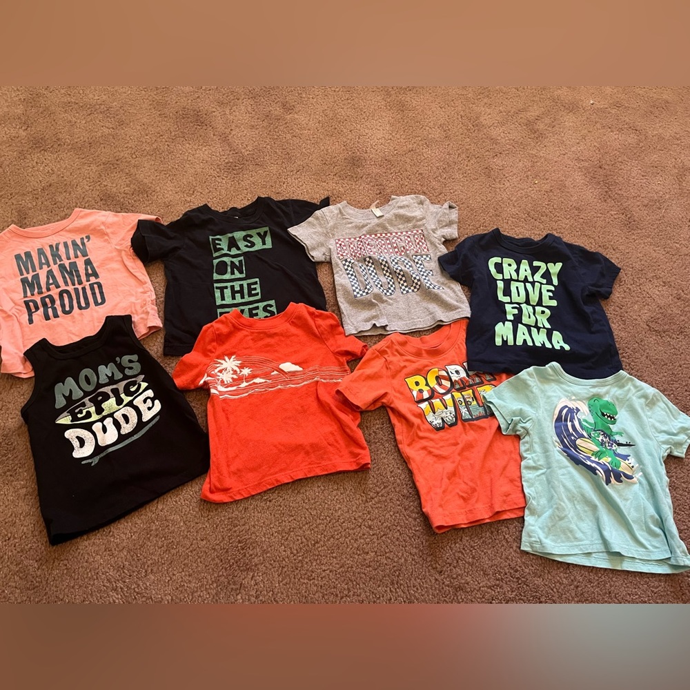 Graphic tee boy bundle, all size 12-18/18 months. Various brands. Smoke free/pet free home. Follow me for boy boys clothes. I have way more that isn’t pictured yet so feel free to ask! All of my items are from a smoke free/pet free home!