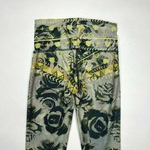 Teeki Desert Rose Hot Pant Stretch Yoga Gym Workout Legging Gray Yellow Women XS