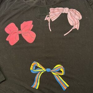 Puff sleeve black cotton t shirt with decorative colored bows. Excellent condition