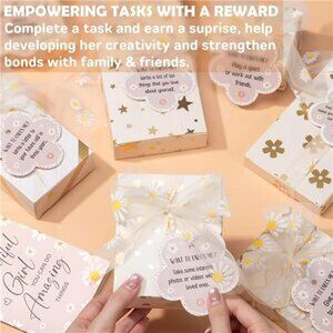 🧿DELICATE GIFT-WRAPPED & GIFT CARD: Make gift-giving effortless and unforgettable! Qinline birthday gifts for teenage girls trendy stuff add excitement to every detail. Comes with a roll of ribbon and eight fun task tags with inspiring words. You can easily tie a ribbon and attach a task tag to each box, adding that special personal touch. All individual boxes are sturdy and designed not to tear, allowing you to save them for future use or fill them with new gifts for other special occasions