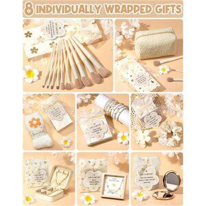 🧿8 INDIVIDUALLY GIFT BOXES FOR GIRLS: This teen girl trendy stuff gift box is perfect for teen girls who appreciate stylish accessories and thoughtful keepsakes. Including Jewelry Box, 7 Bracelets, 1 Necklace with Box, Makeup Brushes(12 pcs), Fuzzy Makeup Bag, Makeup Mirror, Fuzzy Sock, Flower Hair bands & Flower Claw Clip, 8 task tags, daisy ribbons & gift card all in a big gift box. Whether for a birthday, holiday, or special occasion, it's guaranteed to make her smile and feel cherished
