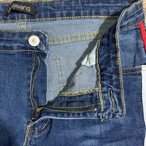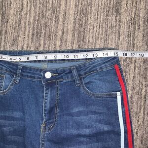 Teen Girl Youth Size XL Flare Jeans Red White Blue Side Stripe Raw Hem 4th of