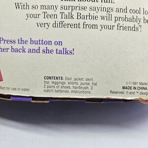 This 1991 Teen Talk Barbie doll from Mattel offers a unique interactive experience with a talking feature, making it a valuable addition for collectors. The doll remains in its original packaging, providing assurance of its pristine condition and authenticity.