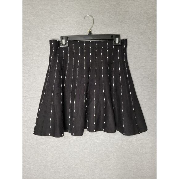 Teen Women Candies Thick Black White Ribbed Gathered Above Knee Mini Skirt Small