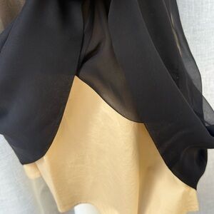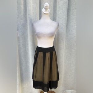 TeenFlo Canada black sheer tan pleated silk organza knee length skirt