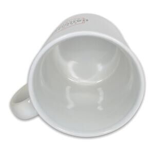 White mug 3 3/4" tall x 3 1/2 wide across the top.