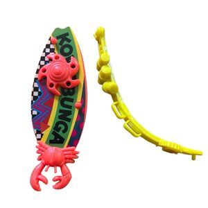 Teenage Mutant Ninja Turtle 1990 Mike The Sewer Surfer Complete. 4 1/4” tall. Parts of the figure feel sticky due to age. Original toy, not a reproduction.