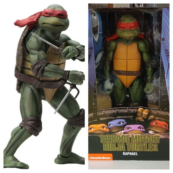 Tags: NECA TMNT 1/4 scale Raphael, NECA 54053 Raphael figure, TMNT movie 1990 collectible, Teenage Ninja Turtles 18 inch Raphael, Raphael sais pizza accessory.