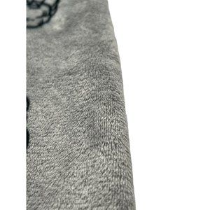 This sweatshirt is a super soft silvery gray fleece with long sleeves and a crew neck. The graphic takes up most of the front. A perfect cold weather snuggle up on the couch top.