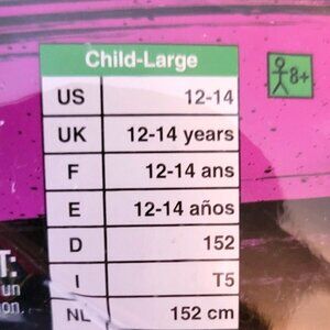 Child Size Large measurements typically fits pre-teen boys and girls between the ages of 12 and 14 years old.