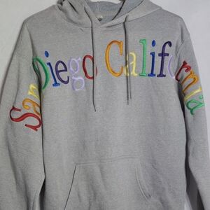 Teenax Embroidered Gray M San Diego California Hoodie Rainbow Letters