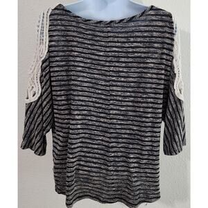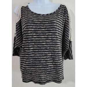 Teenbell Brown Black Striped Cold Shoulder Crochet Top Large Bat Wing Sleeves