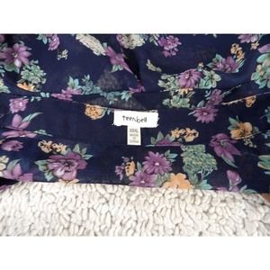 Teenbell Girls Multicolor Floral Long Sleeve Sheer Pullover Tunic Top Size 3XL