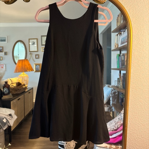 Chic black mini dress by Teenflo. Sleeveless design with a flared skirt. Perfect for versatile styling.