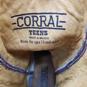 Teens Corral Brown Leather Embroidered Snip Toe Western Cowgirl Boots Size 4.5 T a98