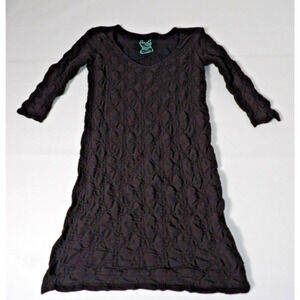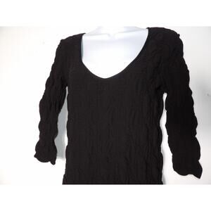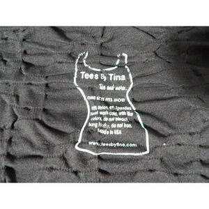 Tees By Tina One Size OSFA Dress Black Crinkle Textured Knee Length Modest Scoop