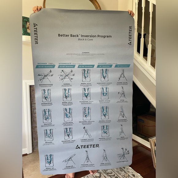 Teeter inversion table mat. Has multiple exercises to reference from while inverting. Has scuffs on back.