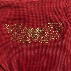 Tee-thermal vneck xtra large fits more like a medium- large cute rivet design on back never worn