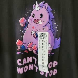 Teeturtle Unicorn Can't Stop Won't Stop Cupcake Graphic T-shirt Black XL