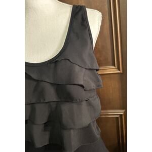 Teez-Her Women’s Black Ruffled Tank, Size Large. Flattering and Slimming. Super Grip Waist. Can be worn alone or layered. Excellent Condition. Smoke Free Home.