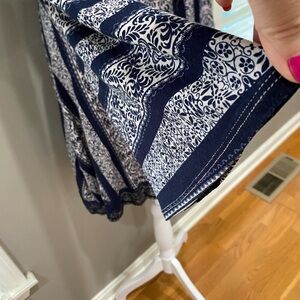 Teeze Me Blue and White Sheath Dress with Bishop Sleeves