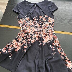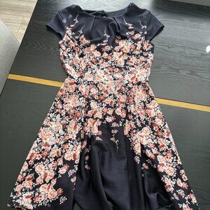 Teeze Me Fit & Flare Dress Size 3/4 Navy and Floral Print EUC