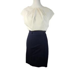 Teeze Me Junior One Piece Dress Navy/Cream NWT Size 7 Back Zip Cap Sleeves