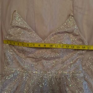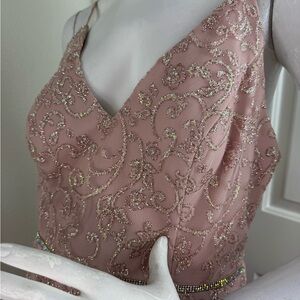 Teeze Me Juniors' Pink Glitter Beaded Mesh V-Neck Formal Dress Size 11-12