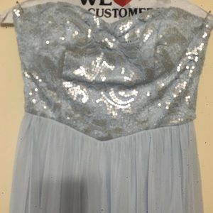 Teeze Me Mid Dress Strapless Baby Blue, Materials: 100% polyester. Used once, like new! Excellent conditions and clean!
